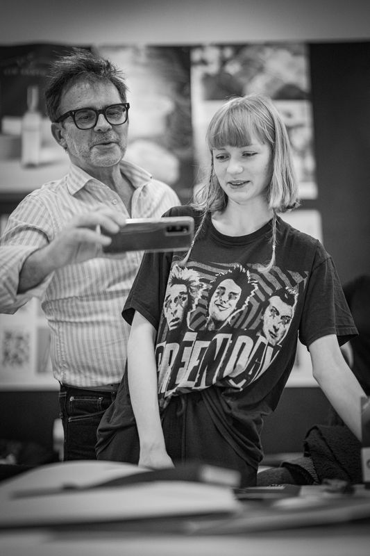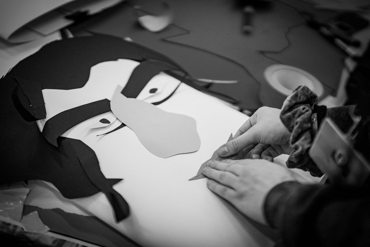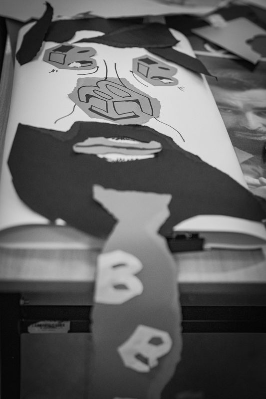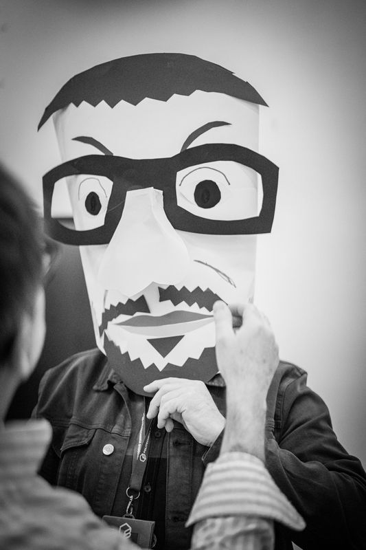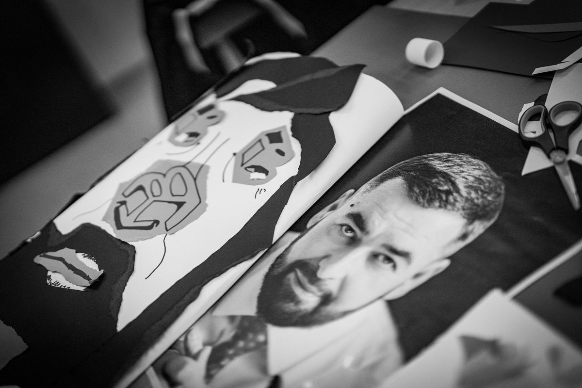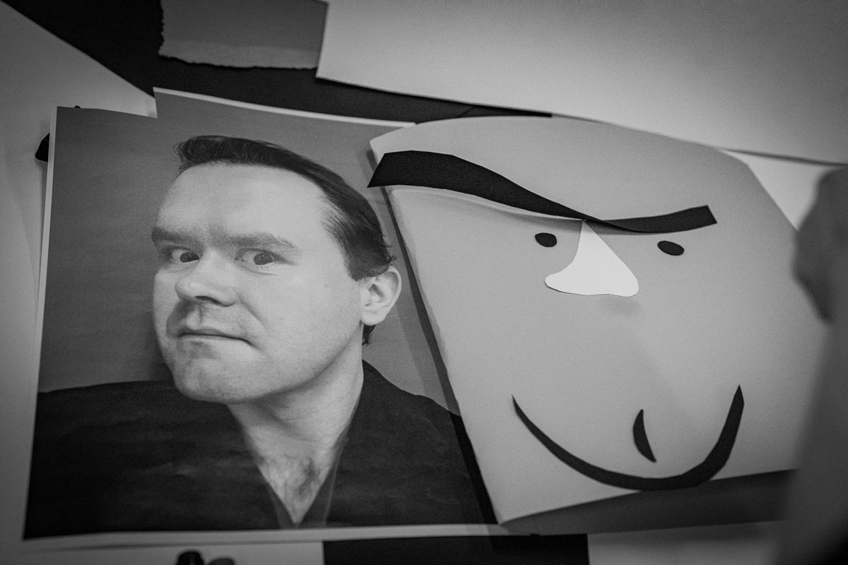Artysta opowiadał o swoich charakterystycznych portretach tworzonych np. z wydartych fragmentów gazet oraz o wykorzystywaniu różnych, często zaskakujących technik. Wspominał m.in. o pracy z pończochą naciągniętą na głowę, o genezie przesadnie dużych nosów w swoich pracach oraz o portretach przygotowanych w rocznicę śmierci Franka Zappy.