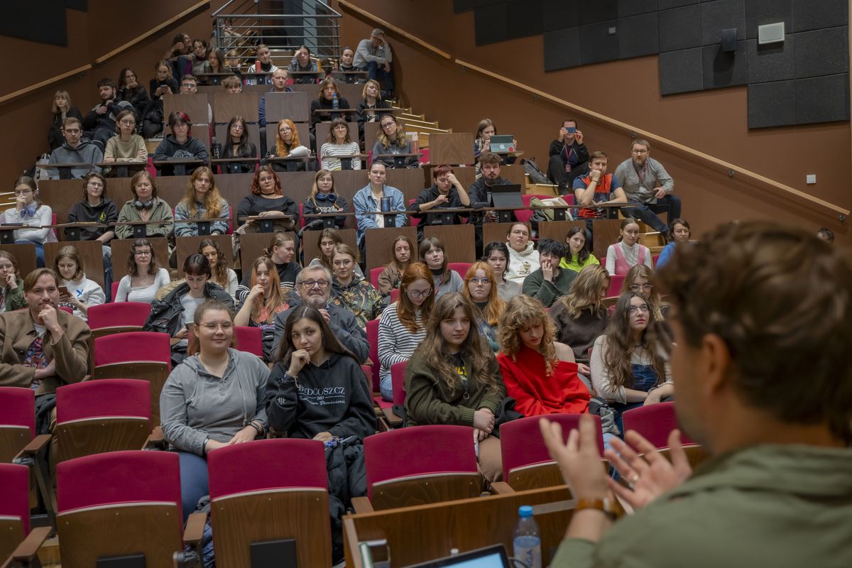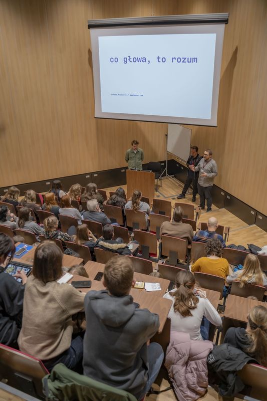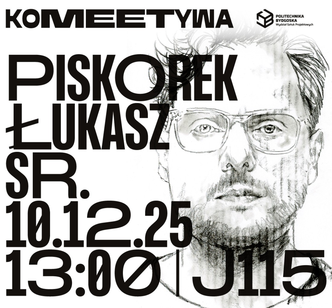 Dzisiaj mieliśmy ogromną przyjemność gościć wyjątkowego artystę – Łukasza Piskorka, jednego z najbardziej rozpoznawalnych projektantów graficznych młodego pokolenia. Spotkanie odbyło się w Auli J115 w ramach cyklu organizowanego przez Katedrę Komunikacji Wizualnej pt. #koMEETywa i przyciągnęło wielu studentów oraz pasjonatów dobrego designu z Wydziału Sztuk Projektowych. Pan Łukasz podzielił się kulisami swojej pracy – od projektowania okładek książek, przez tworzenie wizerunków marek, aż po współpracę ze studiami projektowymi i instytucjami kultury.